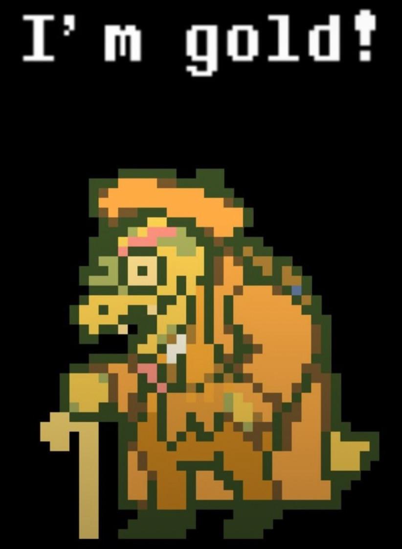 Gerson is an elderly, green, turtle-like monster with a rugged but friendly appearance: