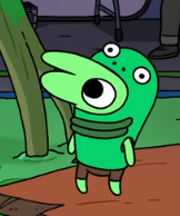 Glep is a green critter from the Adult Swim show Smiling Friends. Born in 329 AD, He works for a charity called Smiling Friends, and he usually sits on his bean bag chair and doing something to pass time. He Usually Has a wizards hat on, and he lives in Pennsylvania.