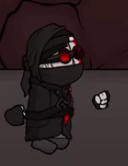 In this episode, Hank's body and the majority of his head and torso are now covered in bandages, and has a darker complexion possibly from the explosion last episode. He wears a black jacket and bandana, what seems to be a surgical mask, and red glasses. He fights 1337 agents, Jesus and his several zombie 1337 agents until Tricky comes from the abyss and mixes everything up. The conflict between Jesus and Hank is ended when Tricky intervenes, allowing Hank to shoot a few rounds into Jesus' chest, but he is flung onto a cliff where Deimos and Sanford arrive in a convertible to give him a katana to fight against Tricky, although, they get crushed by a Flying Party, after which Tricky rips off the top of Jesus' head. In the end, Hank kills Tricky by slicing the top of his head off, but the clown is revived instantly and kills Hank by also ripping his head off and smashing it against the ground till his jaw is completely destroyed, with the text "OMFG! YOU DO NOT KILL CLOWN! CLOWN KILLS YOU!" on screen.
