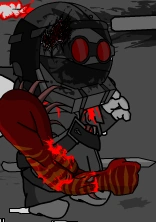 Hank curbed into the ground in the aftermath of Madness Combat 11's events.
