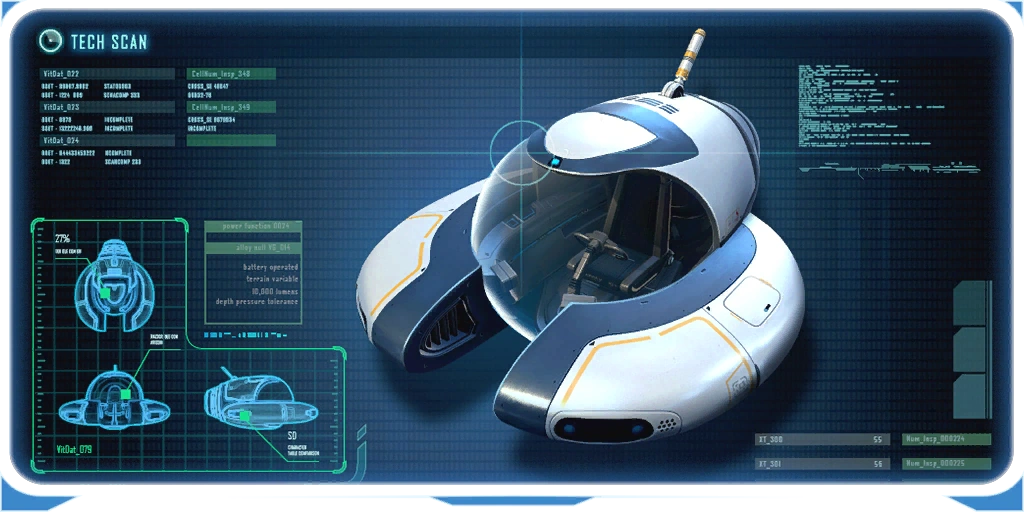 The Seamoth is a versatile personal submarine featured in the game Subnautica. Known for its speed and maneuverability, it is an essential early-game vehicle for exploring the shallow and mid-depth biomes of Planet 4546B.